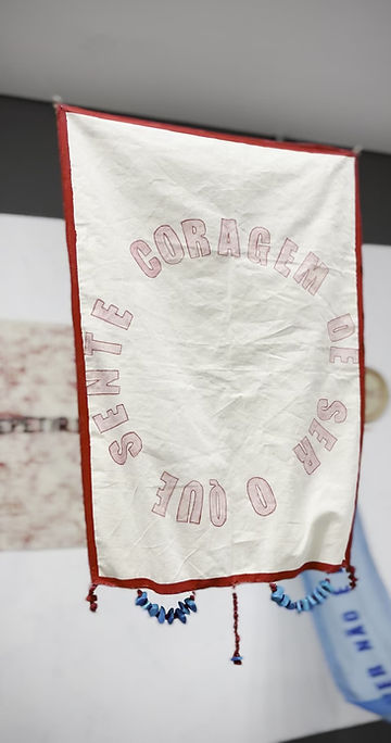 Nesta exposição estiveram as obras "‘Nem sempre o antagônico precisa ser nossa guiança"; "NaTuRa"’, "toda en(cruz)a", "incorporação", exu é I, "até nosso cabelo gira", "caça coragem" e "!" e a publicação/ zine "ta com quem?"